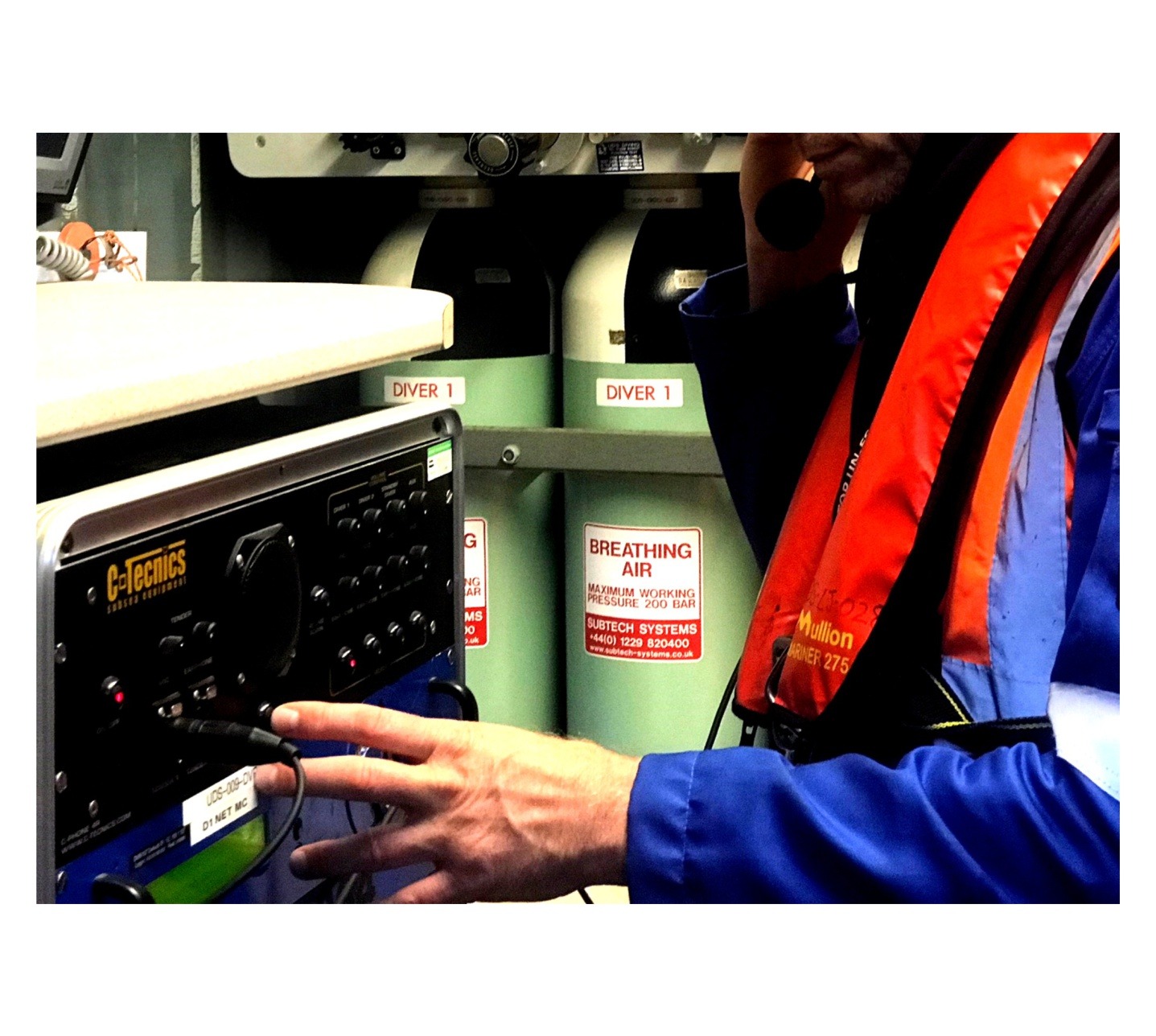 The system incorporates four channels, typically used for two working divers, one standby diver and one auxiliary channel, simplifying communication in complex dive setups.